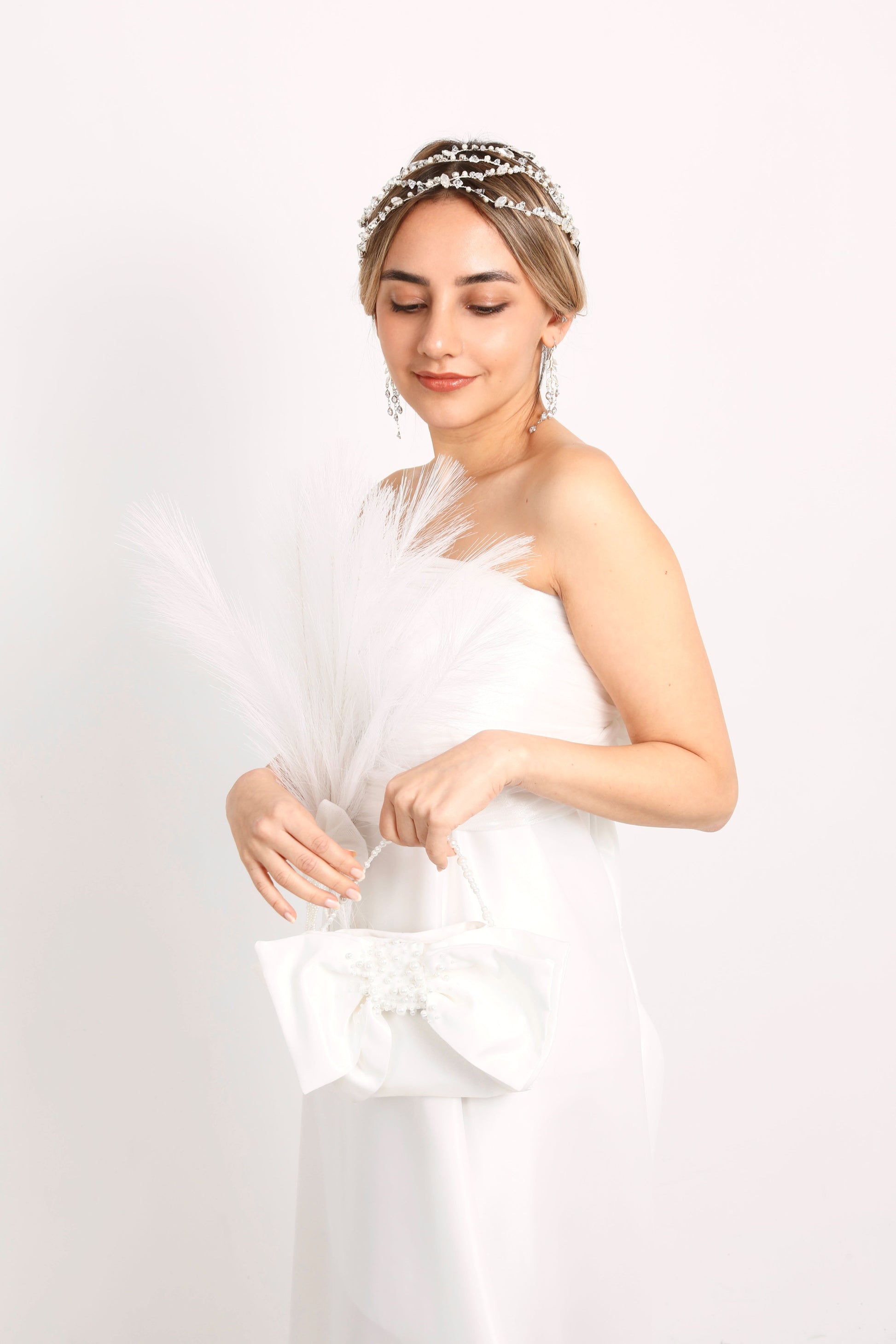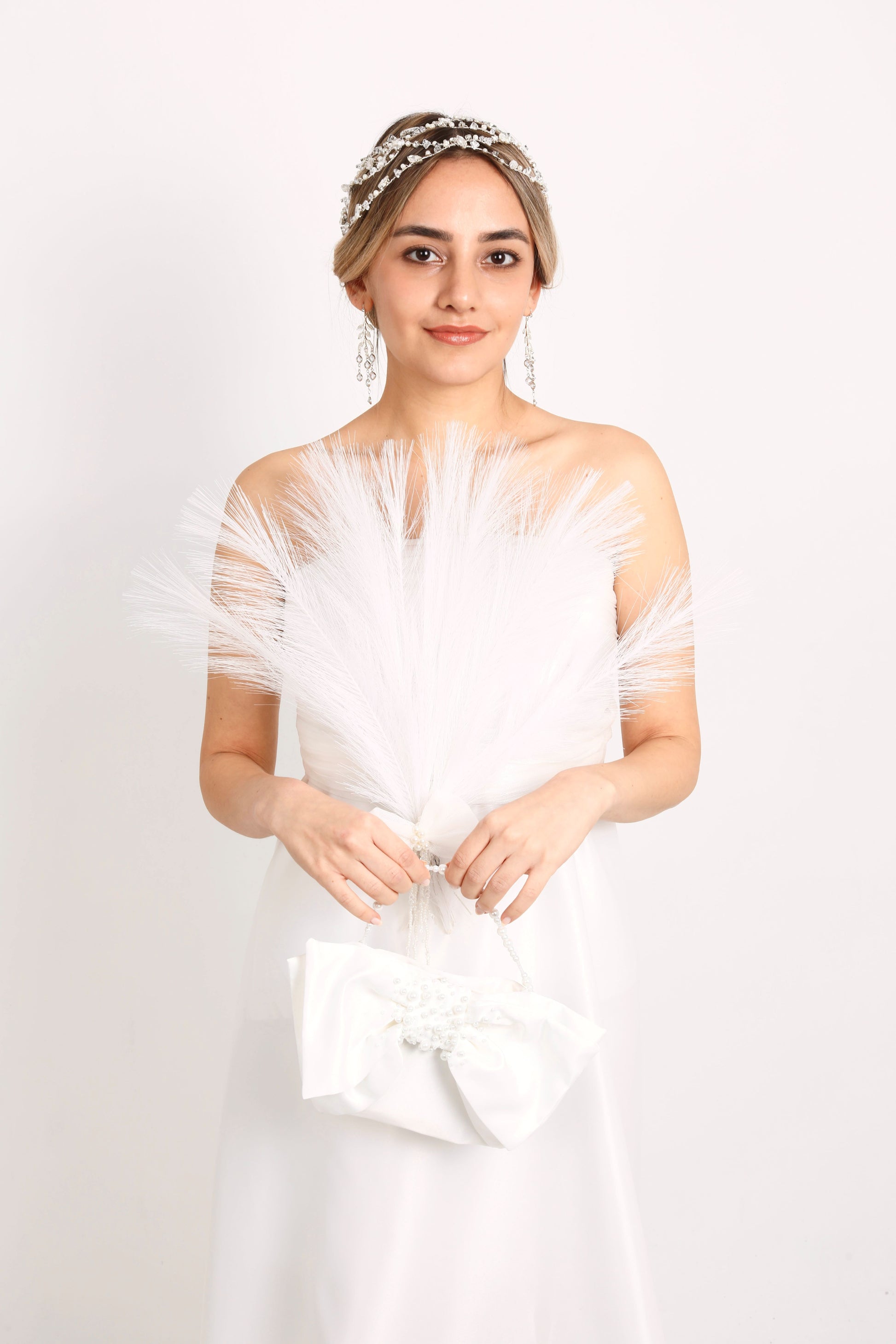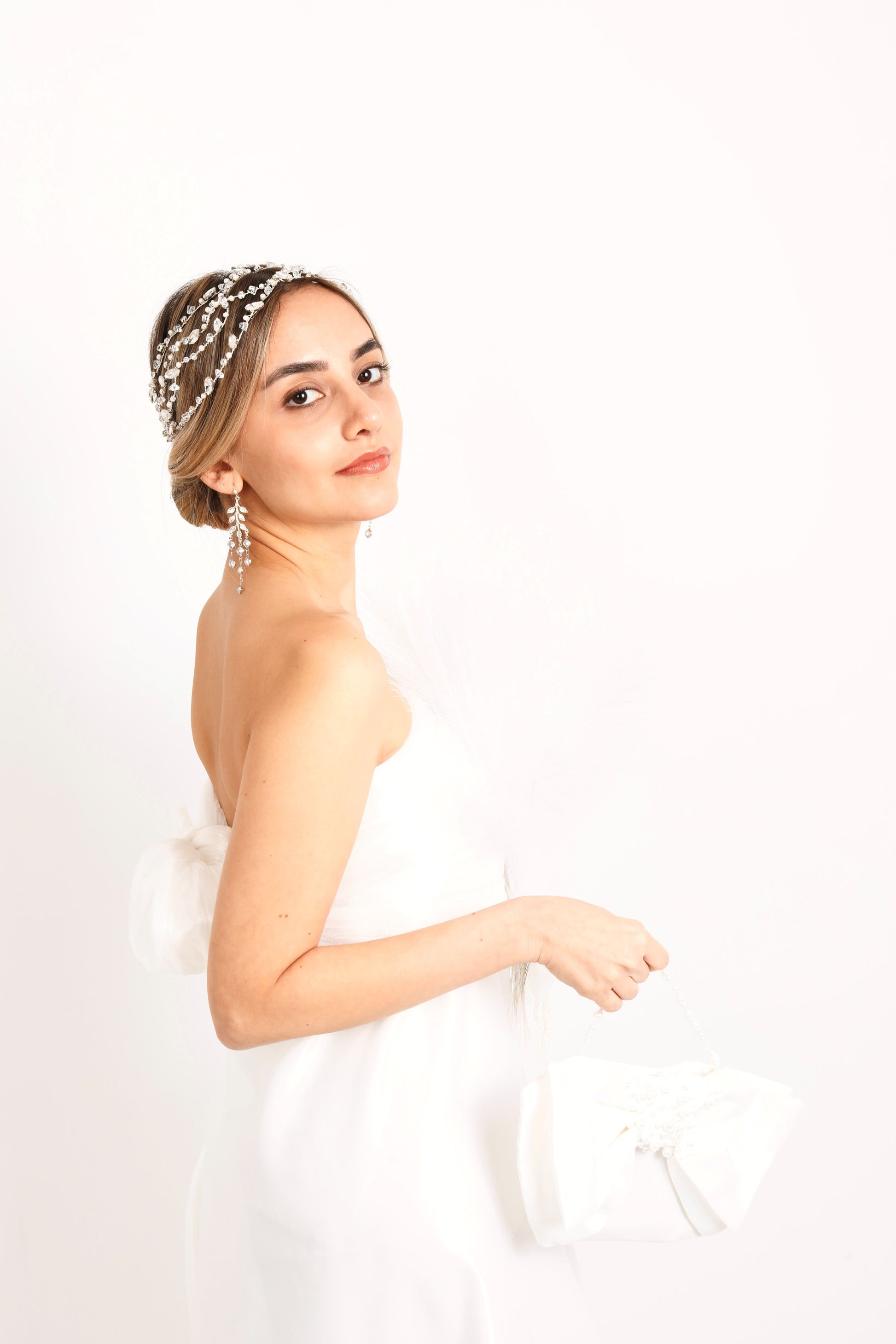 - Kristal taş, gümüş taş ve kristal boncuk, doğal su incisi işlenmiştir.