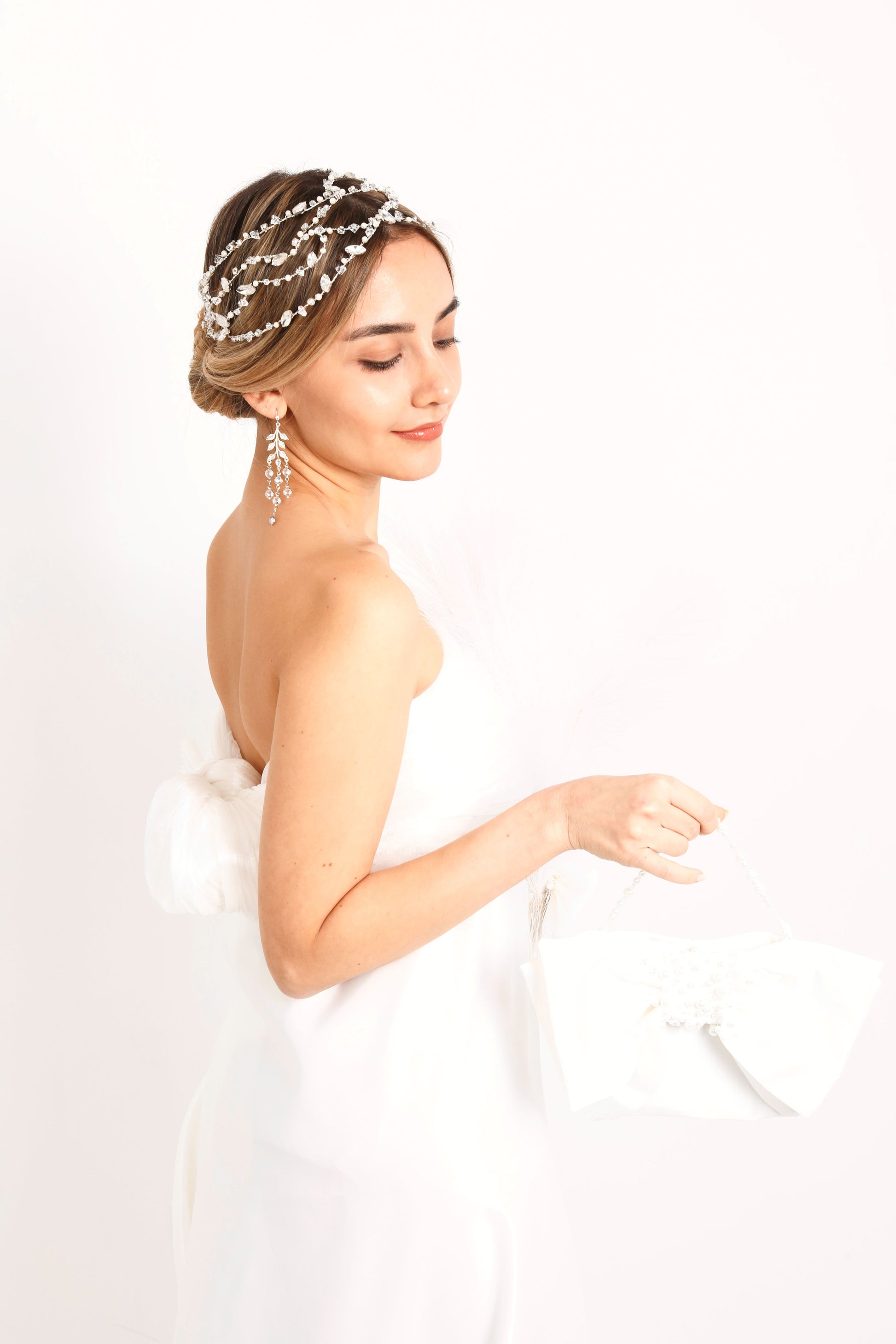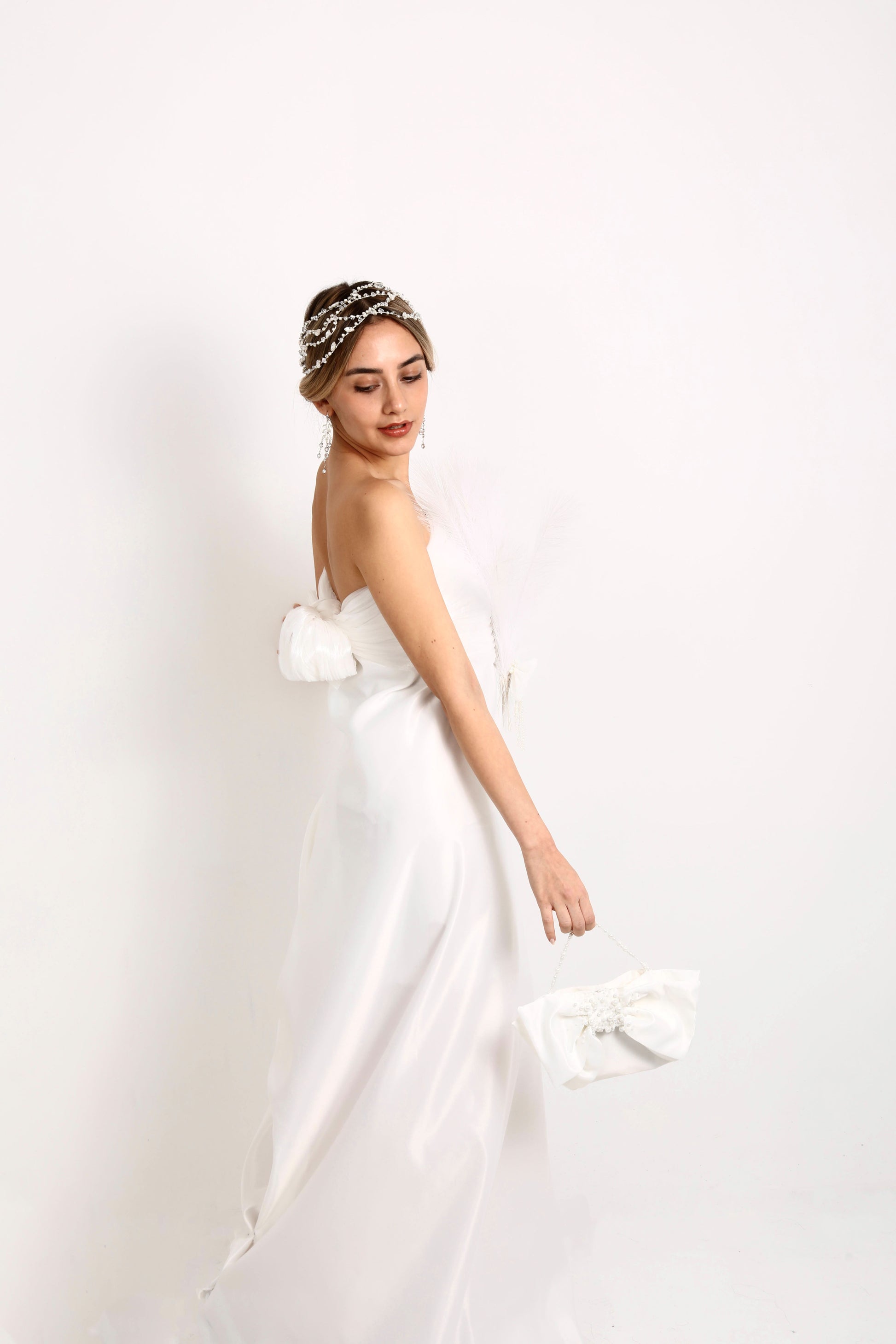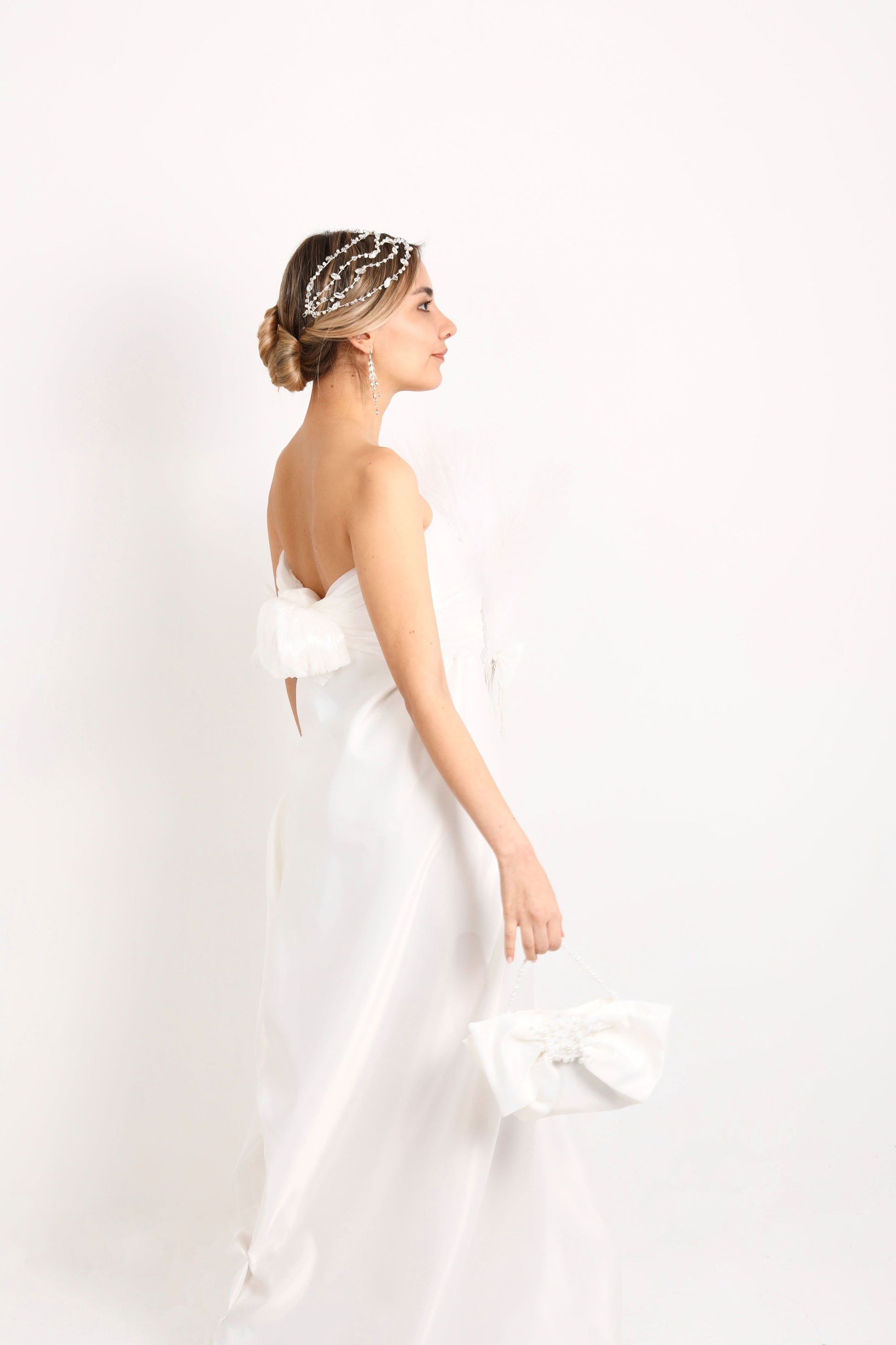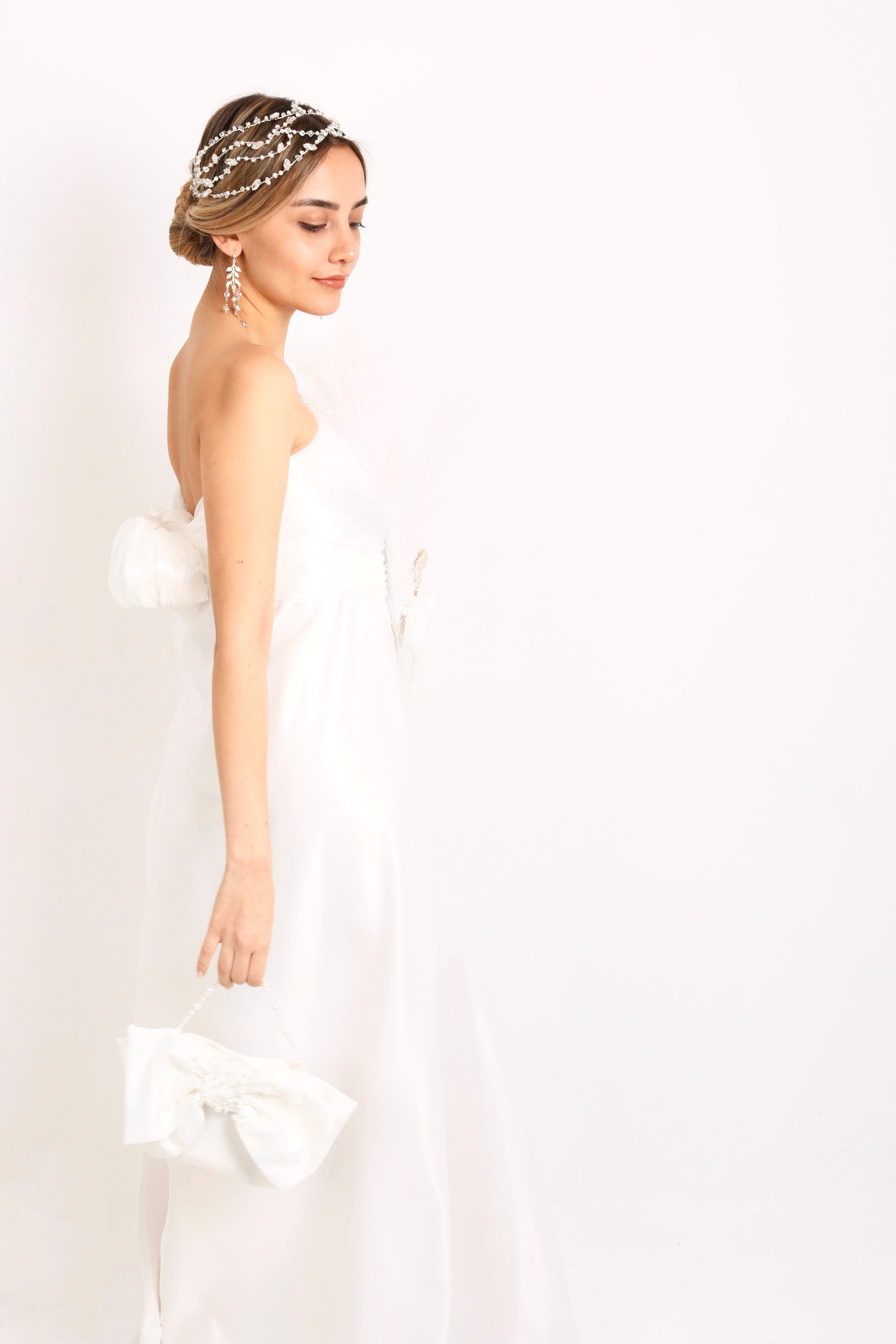 - Kristal taş, gümüş taş ve kristal boncuk, doğal su incisi işlenmiştir.