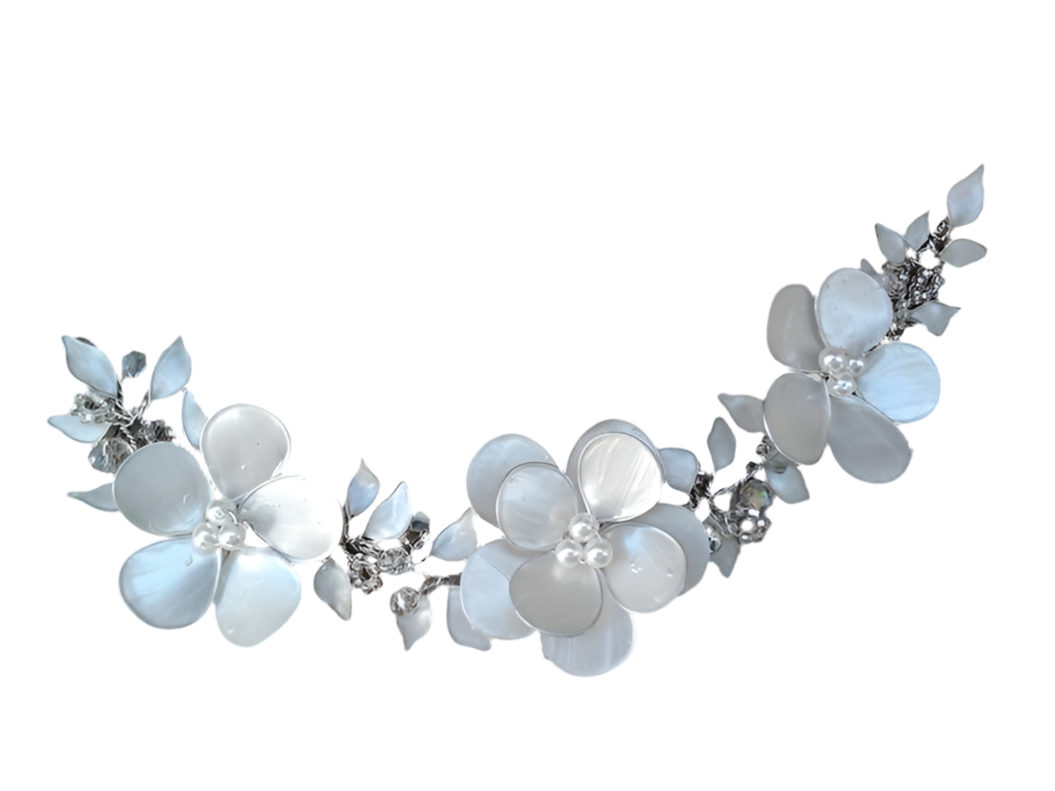 - Gümüş taş, cam inci, beyaz sedef reçine ve gümüş tel uygulanmıştır.