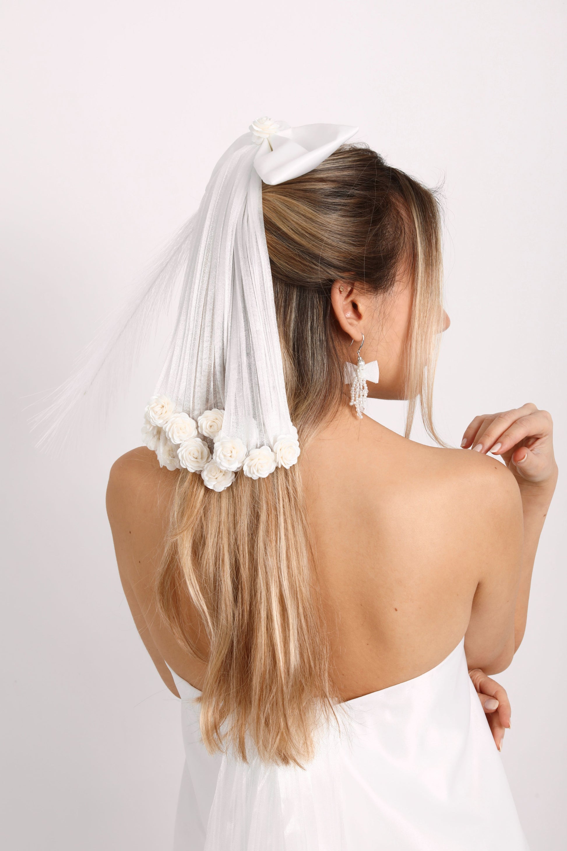 - Saten çiçek, cam inci ve saten kurdele uygulanmıştır.