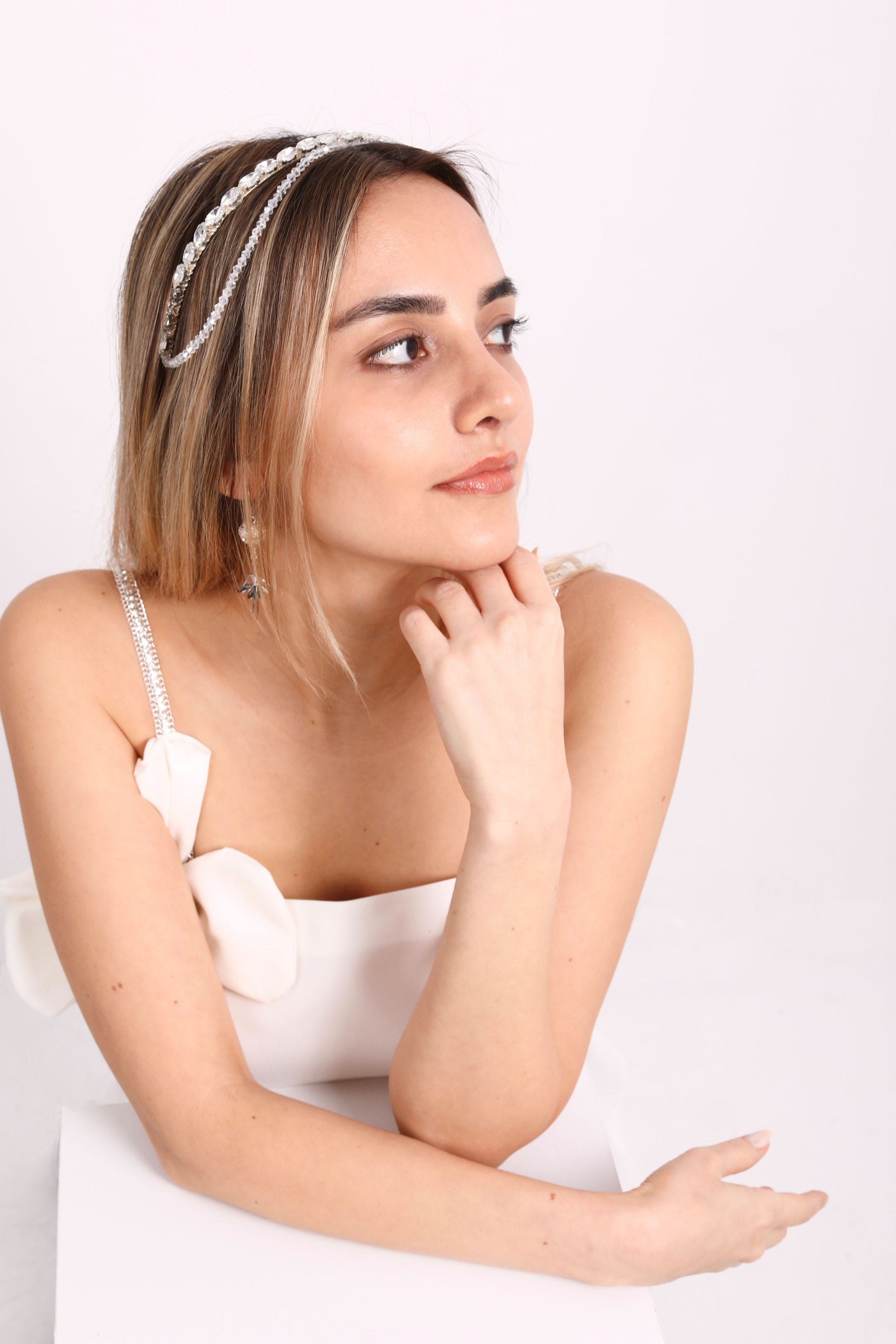- Kristal taş ve kristal boncuk işlenmiştir.