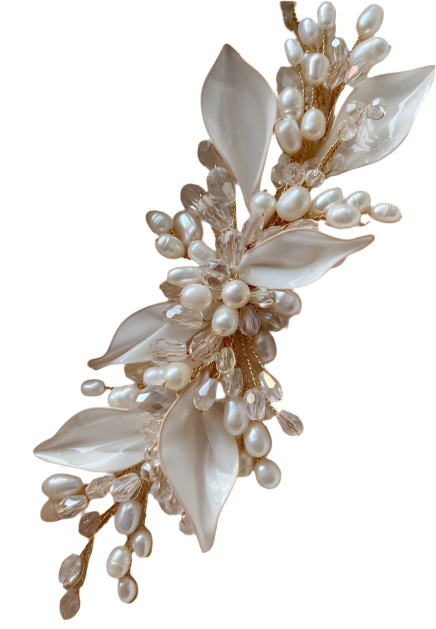 - Reçine, kristal boncuk, gold tel ve doğal su incisi uygulanmıştır.