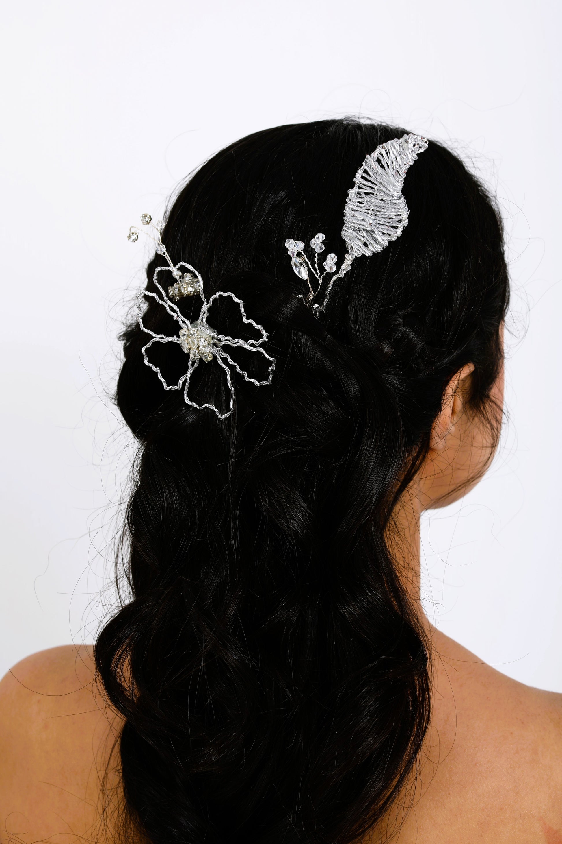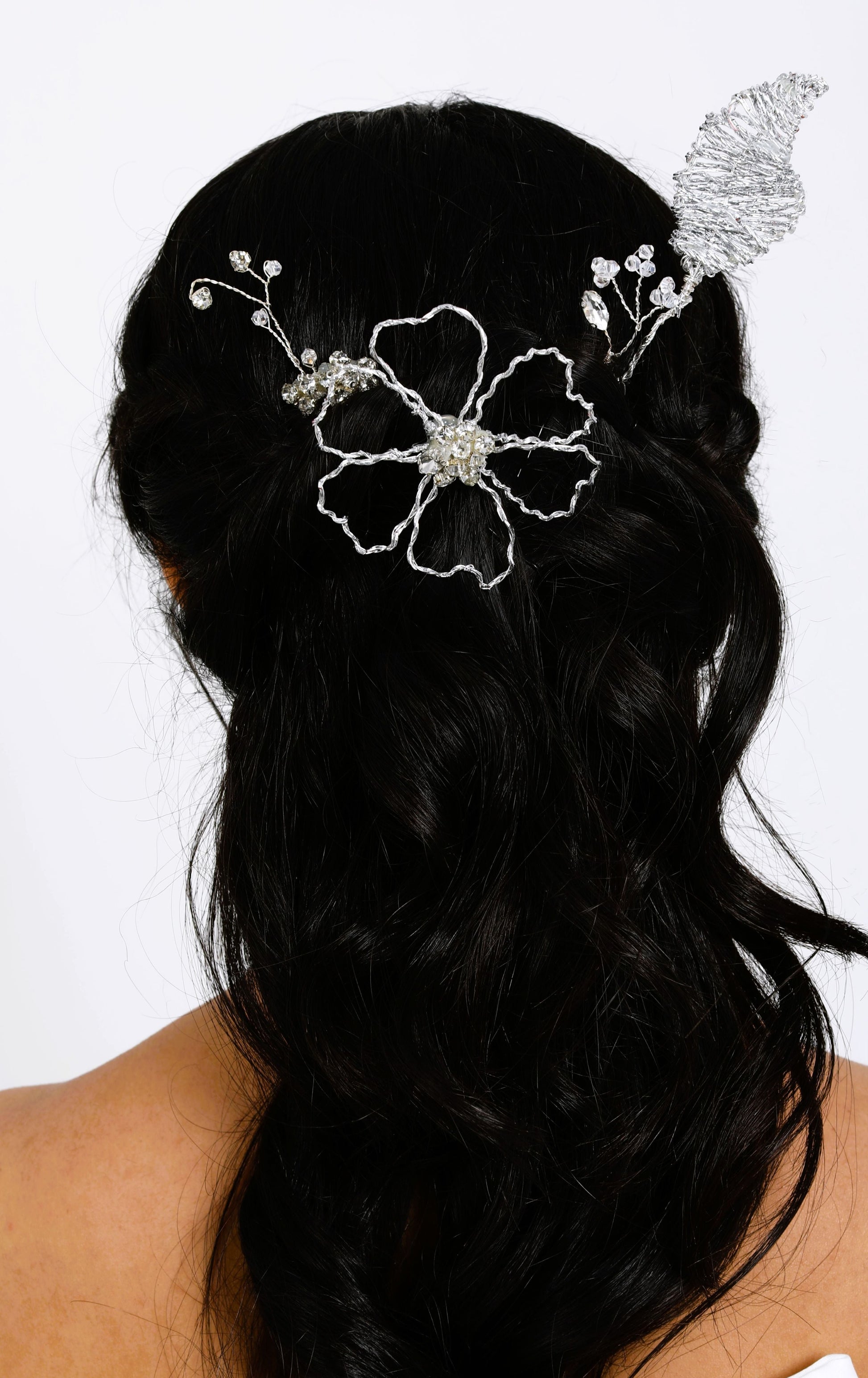 - Kristal taş, kristal boncuk, tel çiçek işlenmiştir.